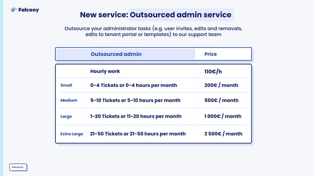 How we basically do it is that we define users, who can request changes or tasks, transparently track those requests and invoice based on working hours. This can save numerous hours of customers’ time as we can often do many of those tasks faster. You can get a sense of the pricing below.