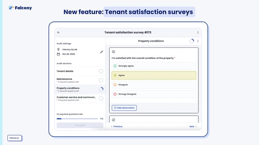 Falcony Tenant Portal update: Surveys, QR-Codes and more branding options